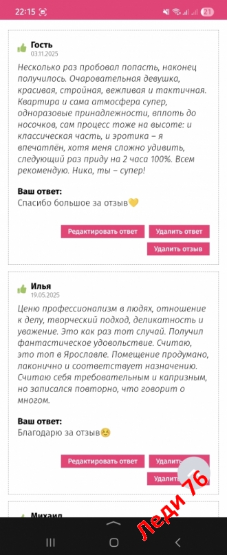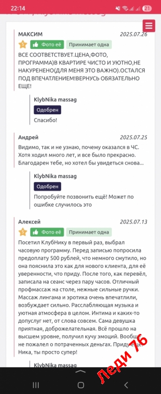 ничего в личку не скидываю, вся информация написана.ВСЕ ПОЛОЖИТЕЛЬНЫЕ ОТЗЫВЫ СМОТРИТЕ НА ДРУГИХ САЙТАХ ПО ЭРО МАССАЖУ!